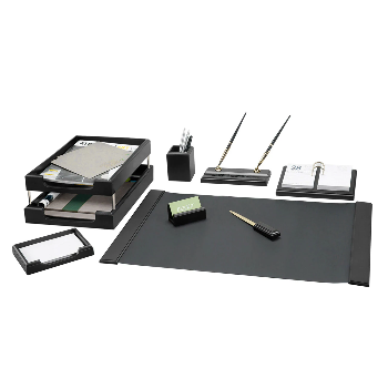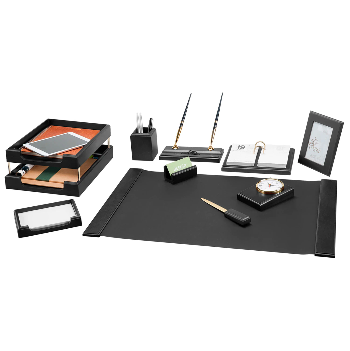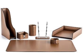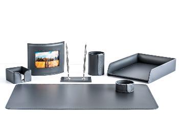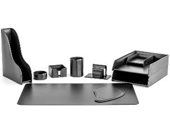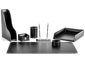 Письменные настольные наборы имеют различные стили и материалы от классических до изысканных: настольные наборы из камня, деревянные наборы, кожаные наборы, наборы настольные из обсидиана, настольные набор из эко кожи, стали и т.д.