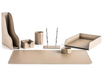 Приборы для рабочего стола из кожи возможно сделать с вашим логотипом. Настольные наборы из кожи для руководителя серии "Б" для вашего удобства можно менять комплектующие (добавлять - убирать). в той комплектации, что Вам необходима для плодотворной работы. Возможно подобрать цвет фактуры из палитры. Настольные наборы на столе в кабинете придают изыск, роскошь и презентабельность. Заходите в раздел набор для руководителя настольный из кожи и выбирайте понравившуюся модель. Делайте заказ через сайт или заказывайте по телефону +7 495 888-46-15, эл. почте или при помощи онлайн консультантов " jivosite". Письменный настольный набор из кожи, прослужит Вам долго и придаст комфорт и уют в рабочую обстановку.