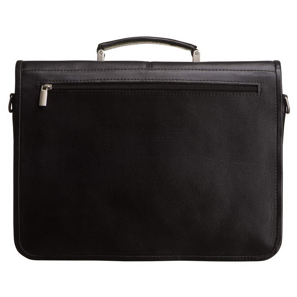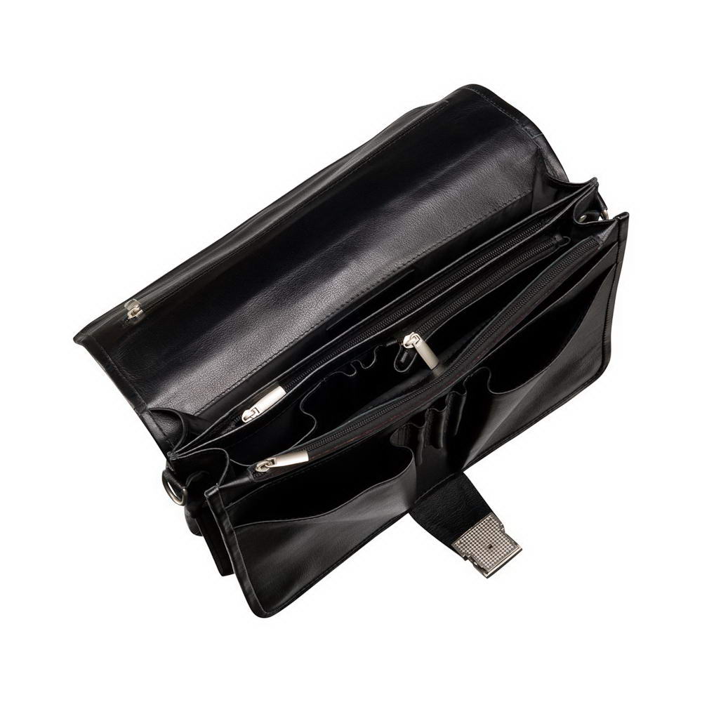 Лаконичный и аккуратный портфель с оригинальным закрытием замка. Аккуратный благодаря дизайну и особой коже, из которой сшит. Такой коже не страшен ни дождь, ни снег, ни грязь. Специальное покрытие защищает его от влаги и одновременно придает очень стильный вид. На обратной стороне клапана расположен карман для особых и важных вещей. В целом, обилие карманов и отделений на молнии достаточно для любых бизнес-задач.