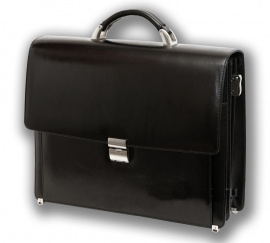 Портфель мужской EMINSA двухсекционный натуральная кожа черный глянец арт.7069-1 (Еминса)