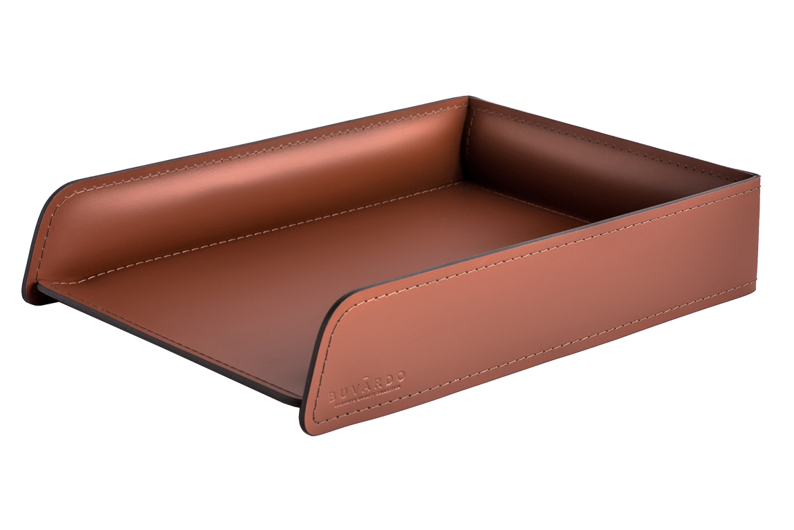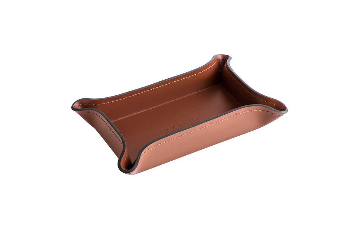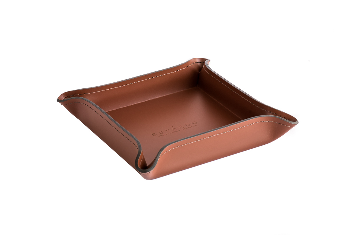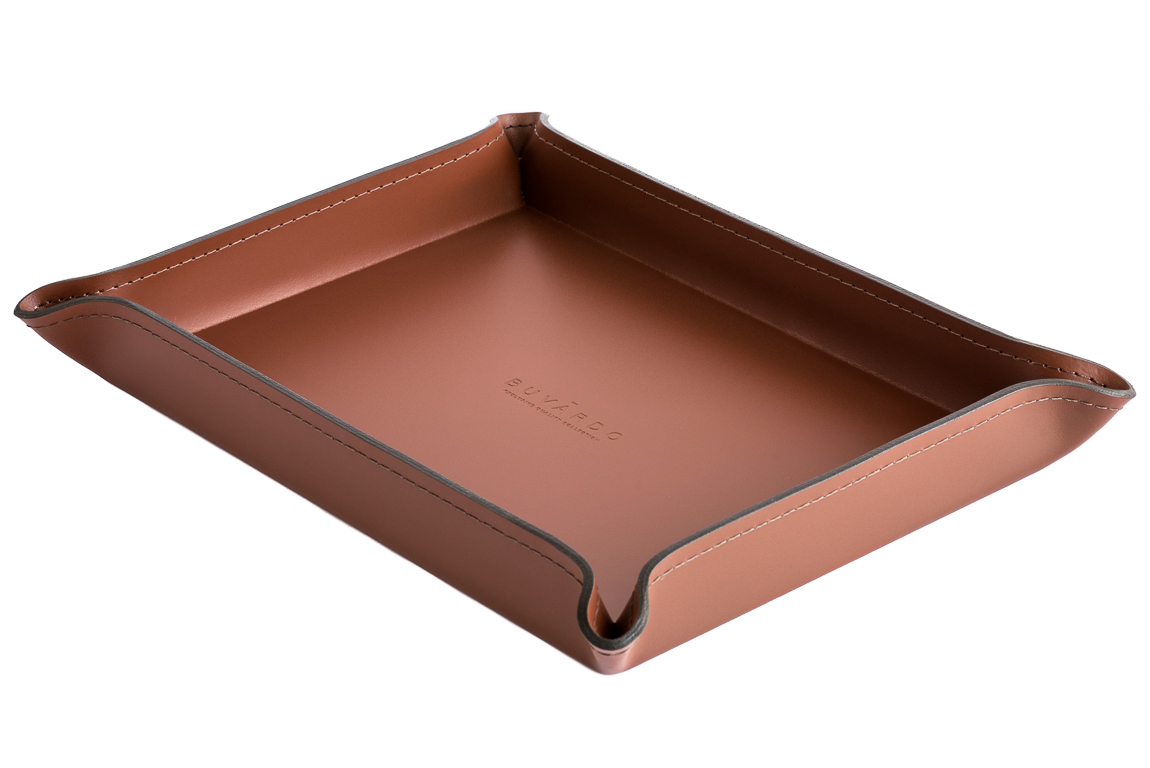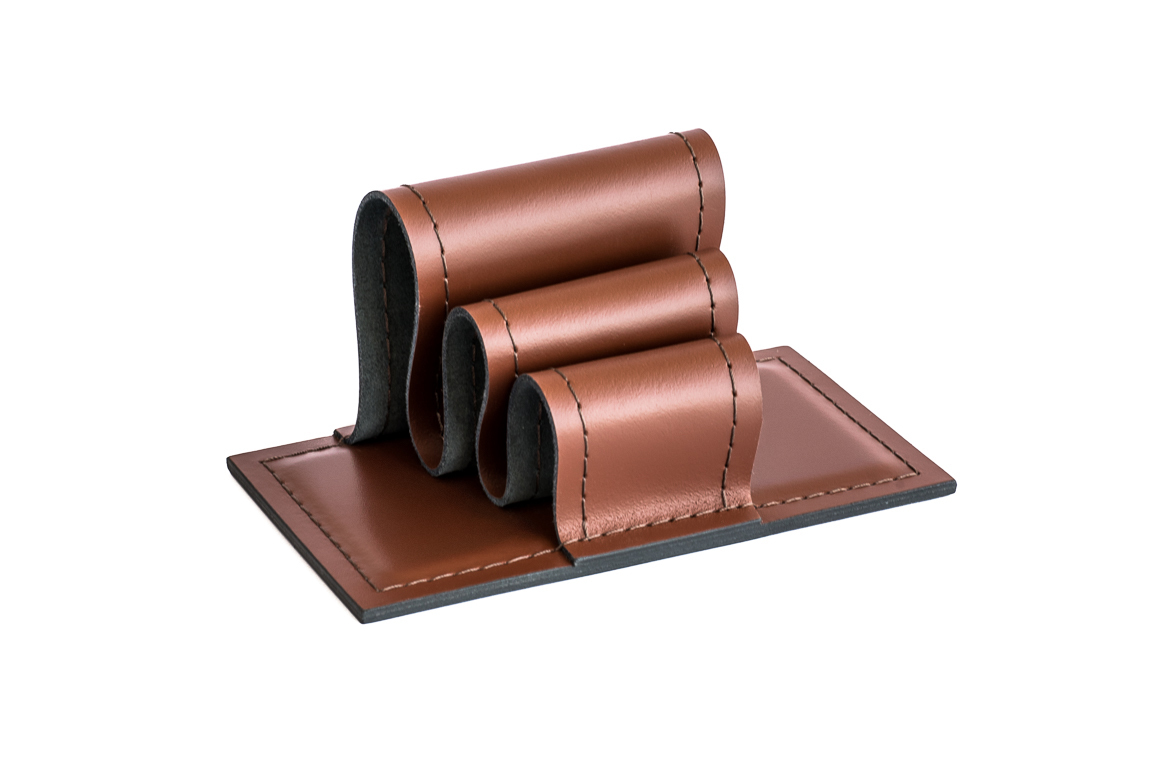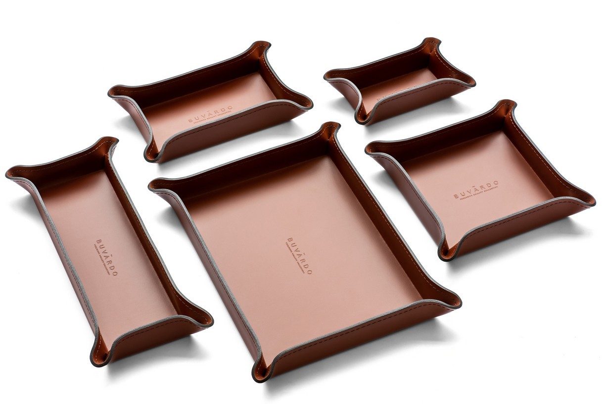 Набор фигурных лотков из натуральной кожи для рабочего стола Б222 каштан