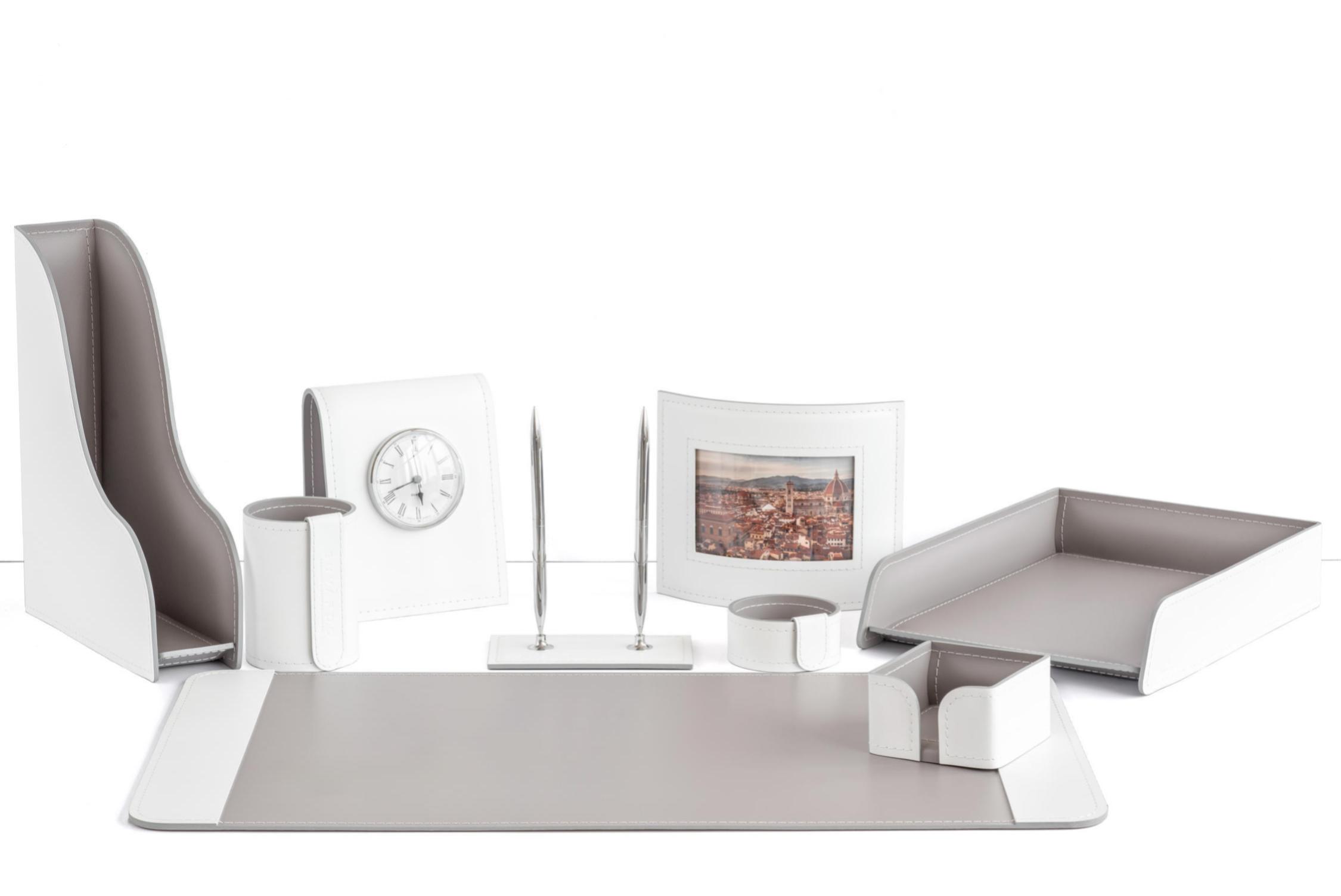 Набор для руководителя настольный из кожи Б246 серый/белый