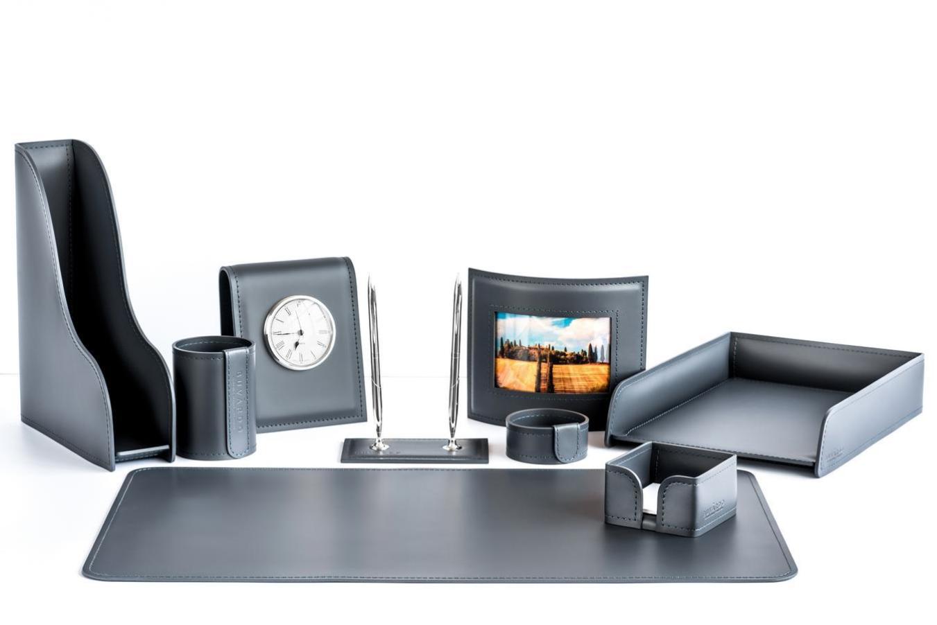 Набор для руководителя настольный из кожи Б253 (органайзер настольный) графит