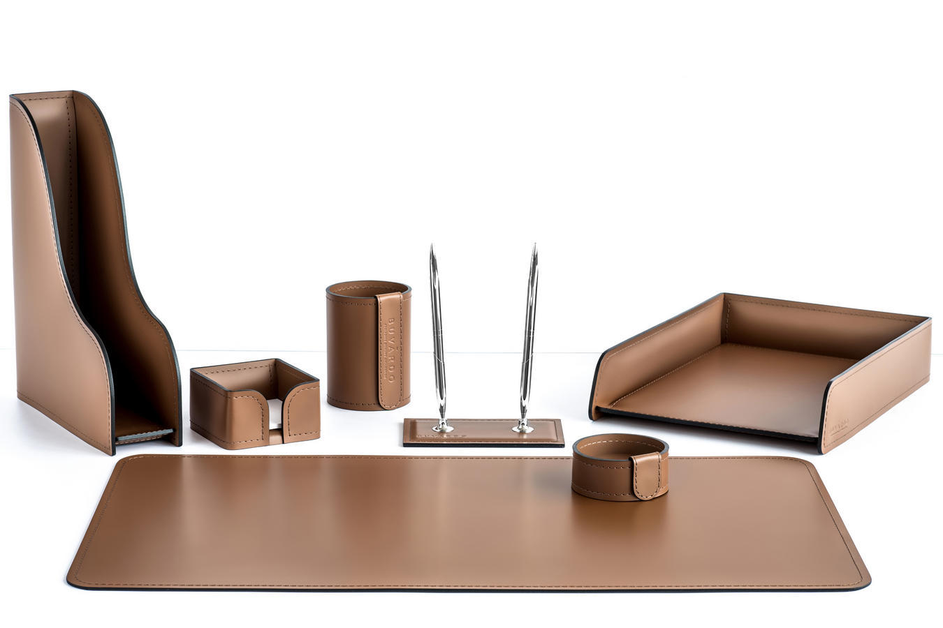 набор настольный из кожи для руководителя Б255 (органайзер на стол) Табак
