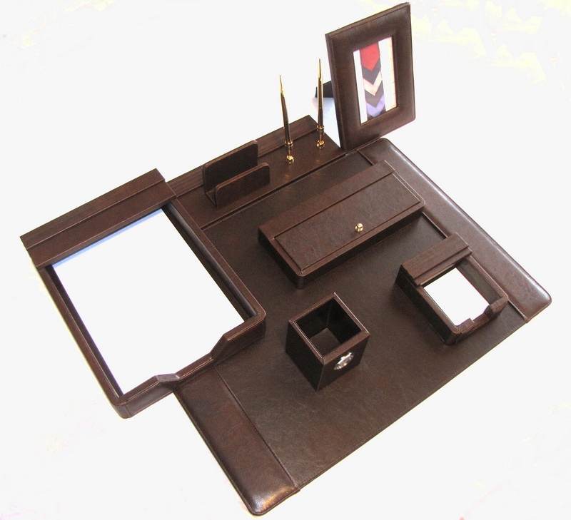 Настольный набор из кожи для руководителя S35V BROWN ( 9 предметов)