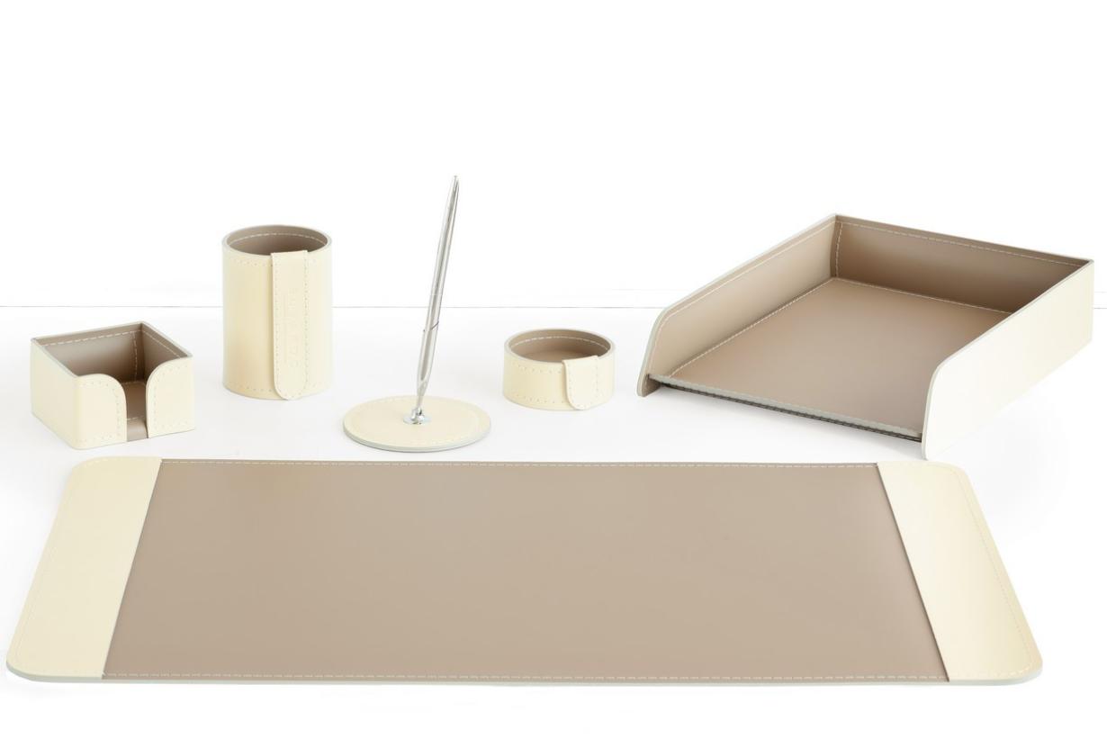 Набор для руководителя настольный из кожи Б240 латте/слоновая кость