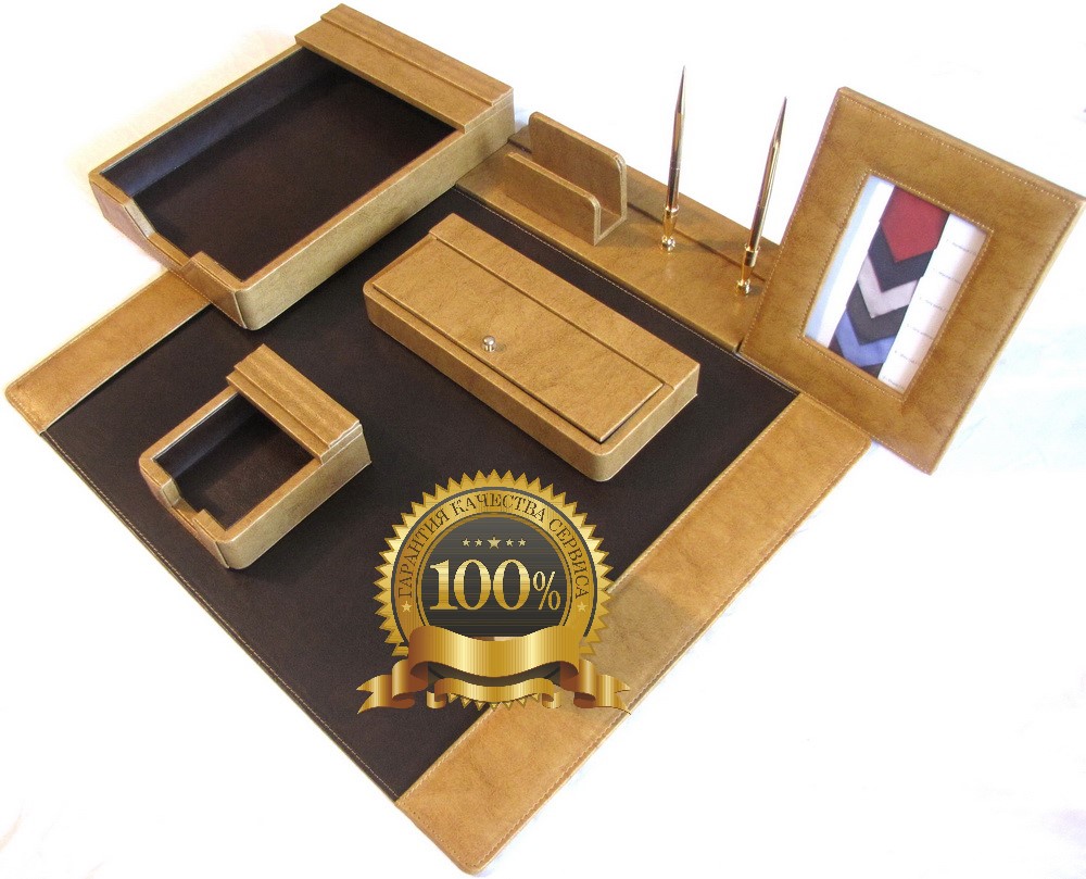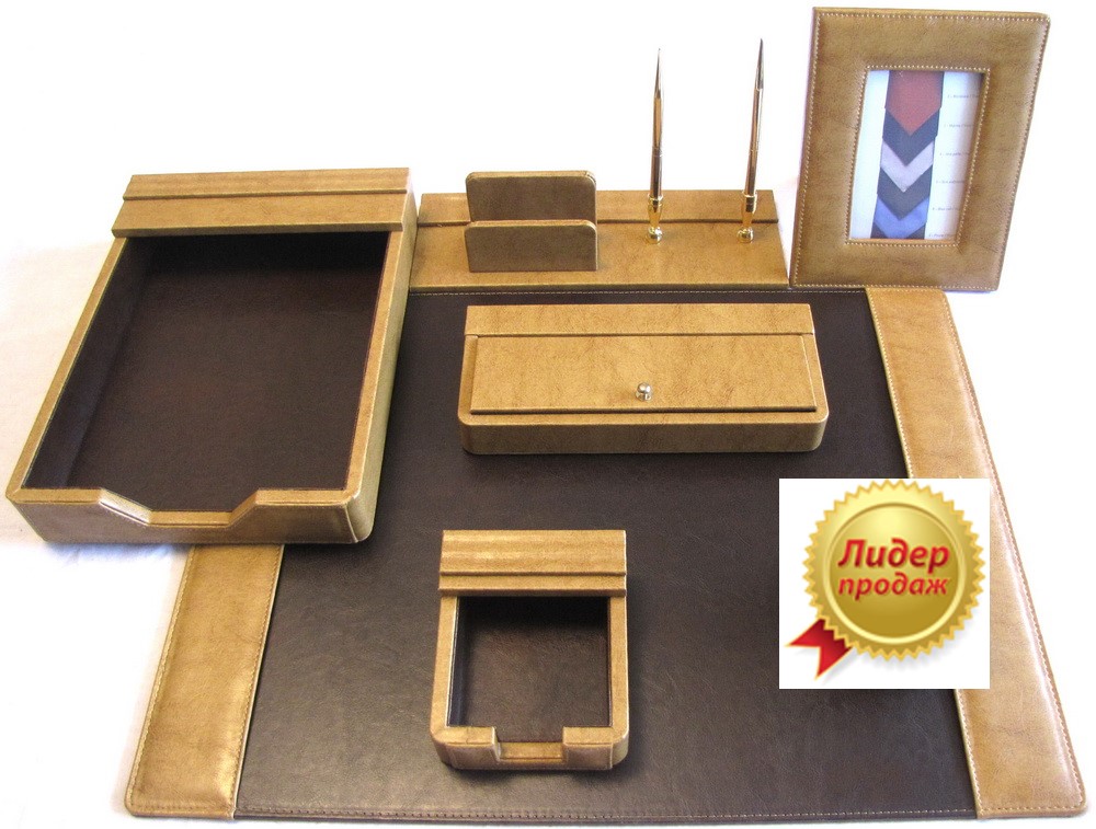 Настольный набор из кожи для руководителя S33V-2 BROWN ( 7 предметов)