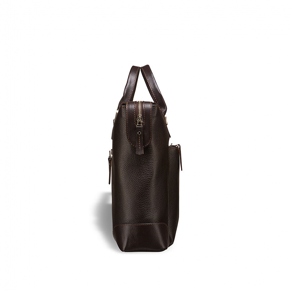 Приятная современная модель, чье деловое назначение обозначено строгостью формы. Жесткий контур, красивая кожа, яркая фурнитура, интересное крепление ручек. Наружные карманы на лицевой и обратной сторонах закрываются на молнии. Внутри два открытых кармана, большой карман на молнии. Съемный плечевой ремень. Модель идеально будет смотреться с мужским деловым костюмом.