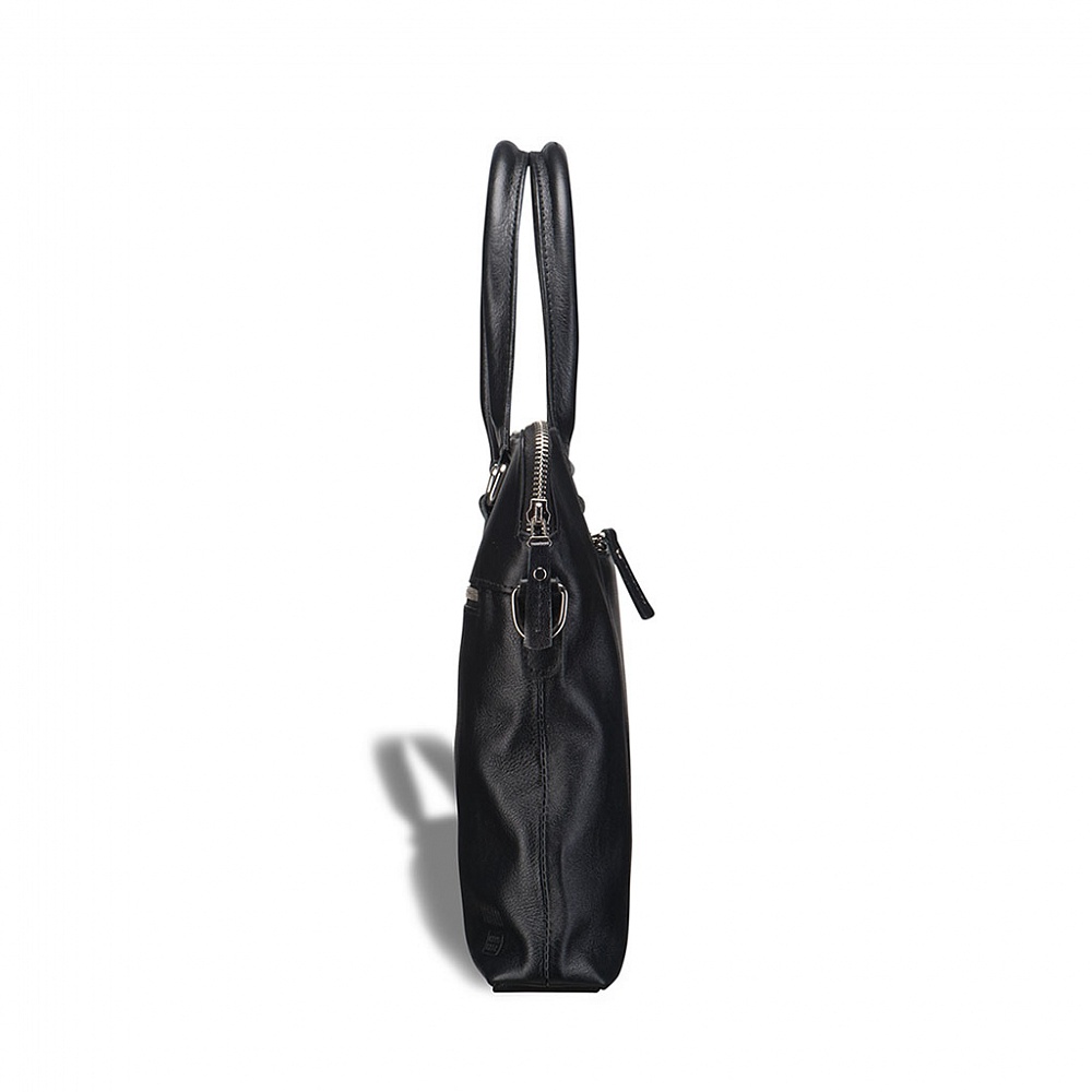 Сумка для документов и ноутбука (или планшетника) с надежно и красиво закрепленными основными ручками. Четкий силуэт, надежные крепления для съемного плечевого ремня. Дизайн лицевой и обратной стороны сумки выполнен таким образом, чтобы максимально эффектно продемонстрировать красоту натуральной кожи, из которой она сшита. Снаружи спереди и сзади расположены вместительные боковые карманы на молнии для важных мелочей. Одно основное отделение для документов, отсек для ноутбука 12” или iPad с эластичной застежкой, так же внутри расположен карман на молнии для ручек, визиток, телефонной книжки.