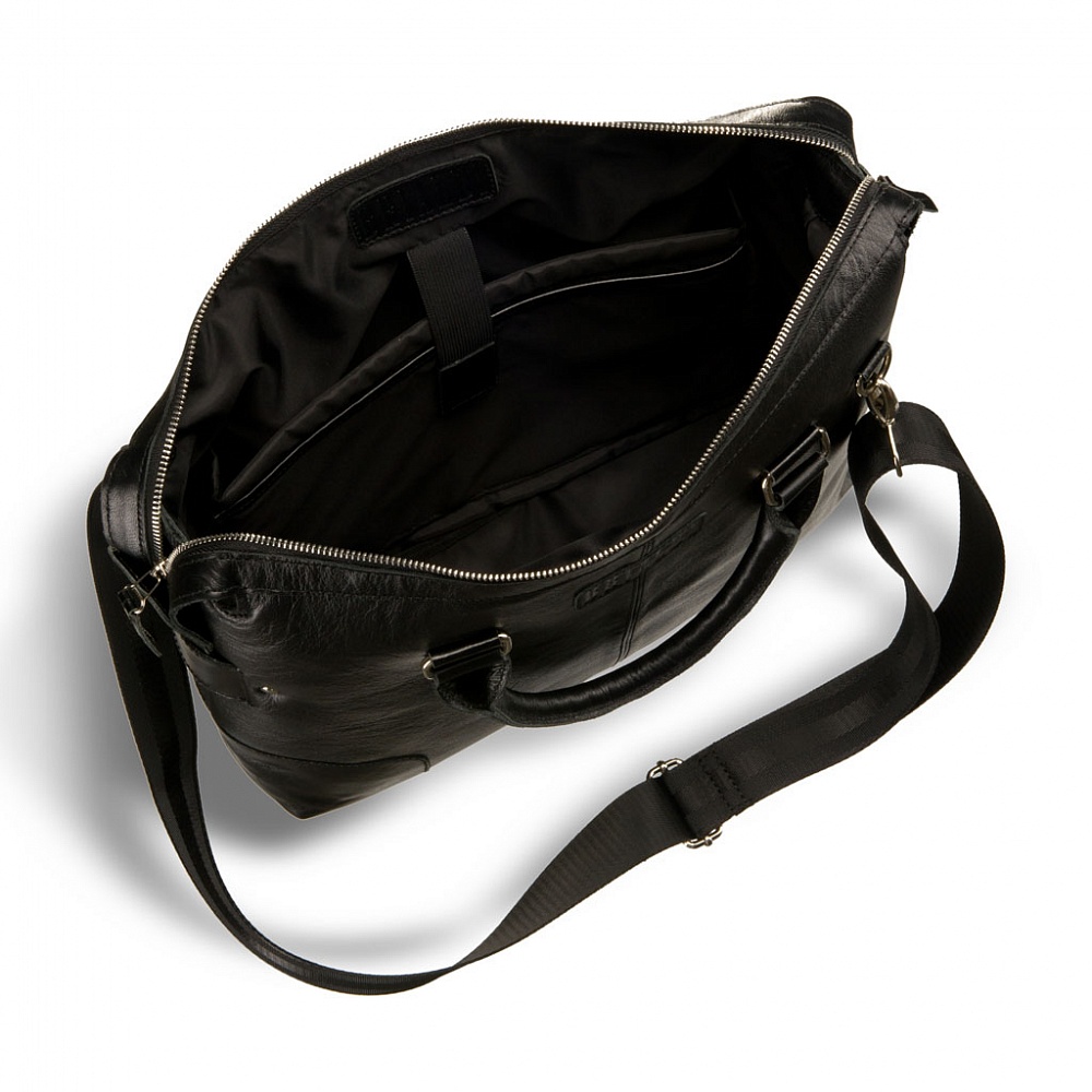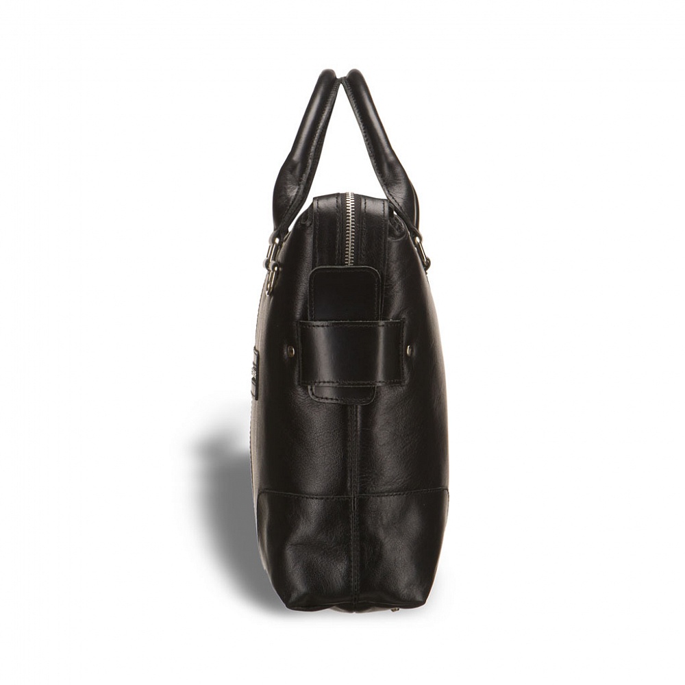 Удобная и вместительная модель – интеллигентная, современного дизайна. Данный аксессуар относиться к категории полужестких моделей, что так популярны сегодня у мужчин. Благодаря полужесткой форме на редкость устойчива. Шикарно оформлена молния основного отделения, по бокам имеются дополнительные кожаные лепестки, которые помогут с комфортом открыть и закрыть сумку. Ручки великолепные, комфортные. В основном отделении имеется отсек для ноутбука на ленте Велькро 14”, а так же дополнительный карман для планшета iPad.