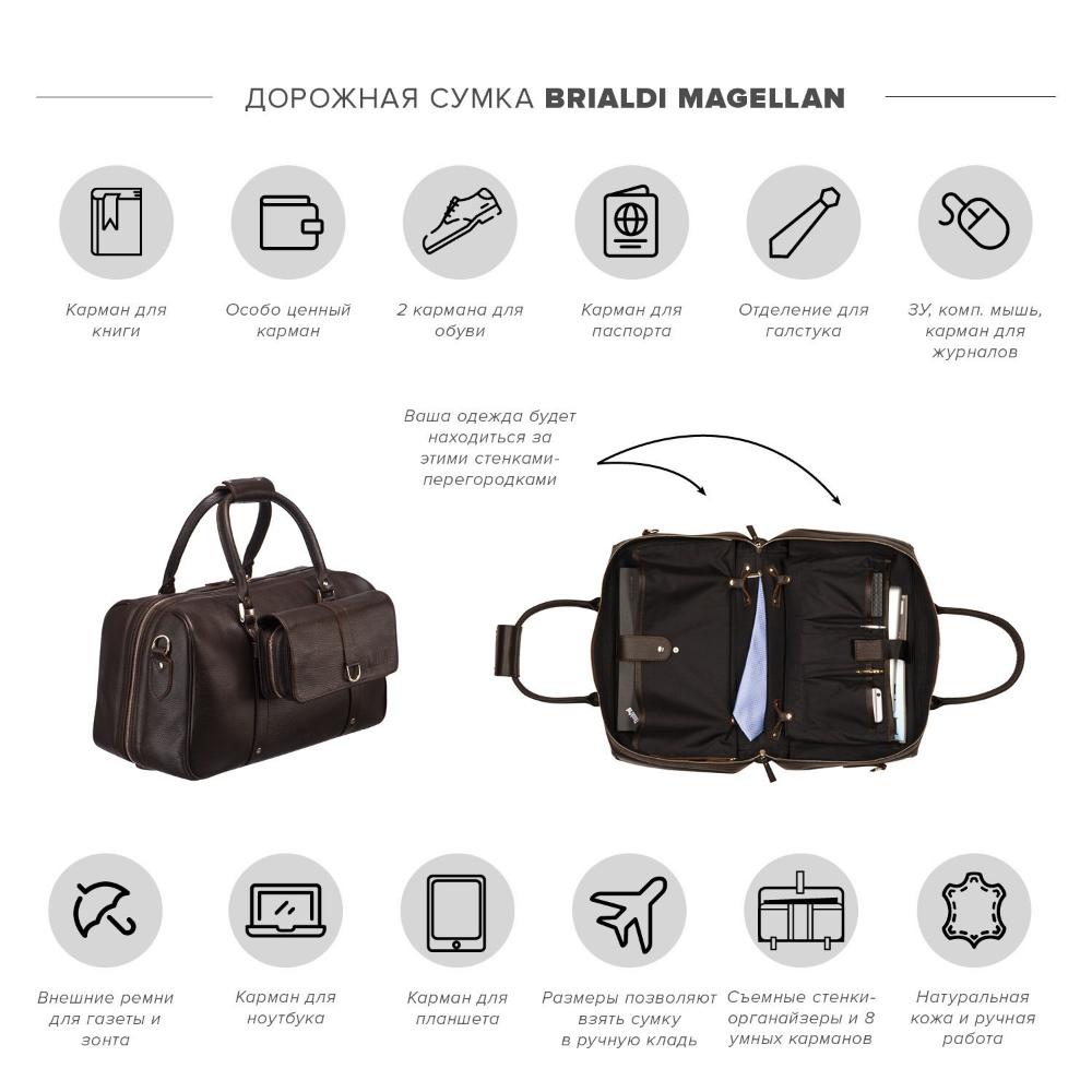 Универсальная сумка 4-в-1 с важными и нужными функциональными карманами и отделениями. Множество функциональных отделений дадут возможность любой, абсолютно любой Вашей вещи найти свое место в Вашем багаже. Две съемные стенки-перегородки позволят организовать одно, два или три отделения с карманами, необходимые на данный момент времени. Только вдумайтесь: ручная кладь (данная модель отвечает практически любым требованиям авиаперевозчиков от эконом-класса и выше), дорожная сумка на выходные, просто дорожная сумка и конечно – спортивная сумка для занятий любимым видом спорта в конце активной рабочей недели. Классический крой, изумительные материалы и безупречное качество изготовления, удовлетворят самые взыскательные вкусы владельца. Испробуйте новый уровень комфорта от компании BRIALDI
